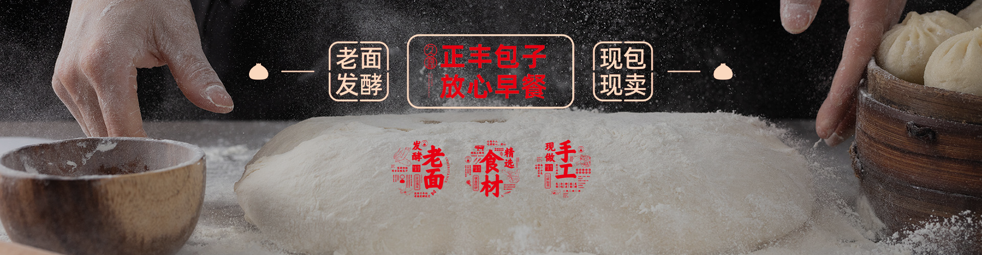 坚持手工揉面 老面发酵 现包现卖